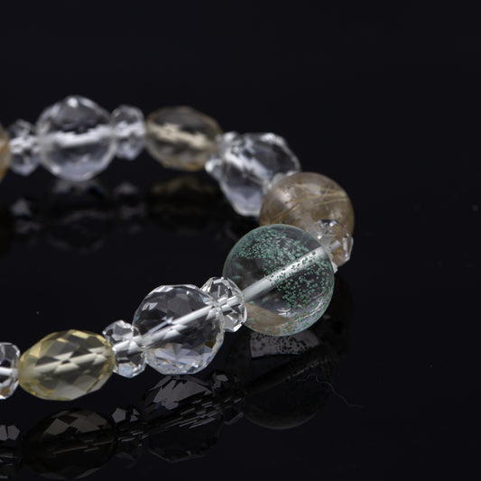 仕事活躍 ガーデンクオーツ&ルチルクオーツ&水晶(カット)MIX パワーストーンブレスレット