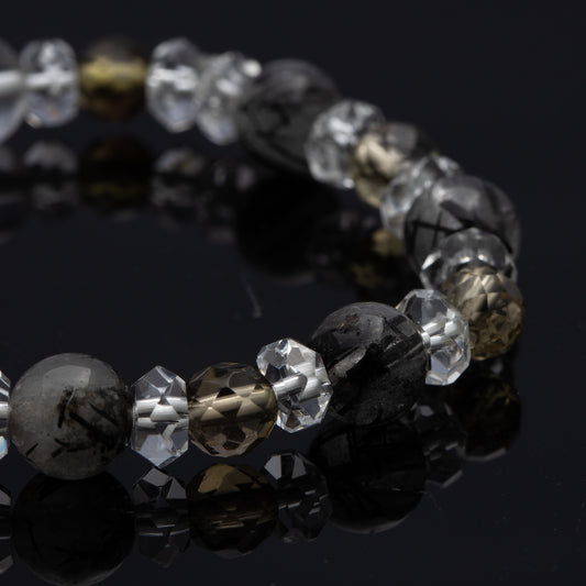 サクッと金運 ブラックルチル&スモーキークォーツMIX パワーストーンブレスレット