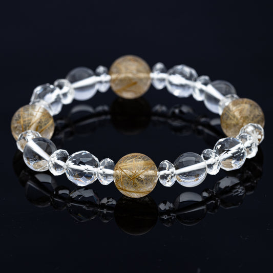ガツっと金運 ルチル&水晶MIX パワーストーンブレスレット13mm