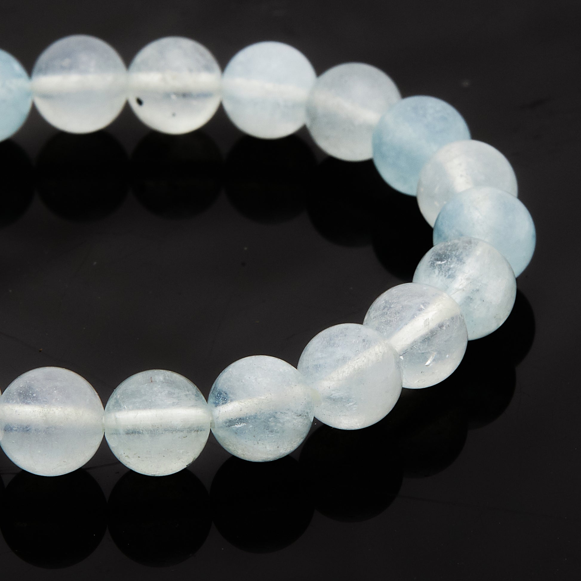 淡いブルーが連なり、光の加減でほんのりと白く輝くミルキーアクアマリン。