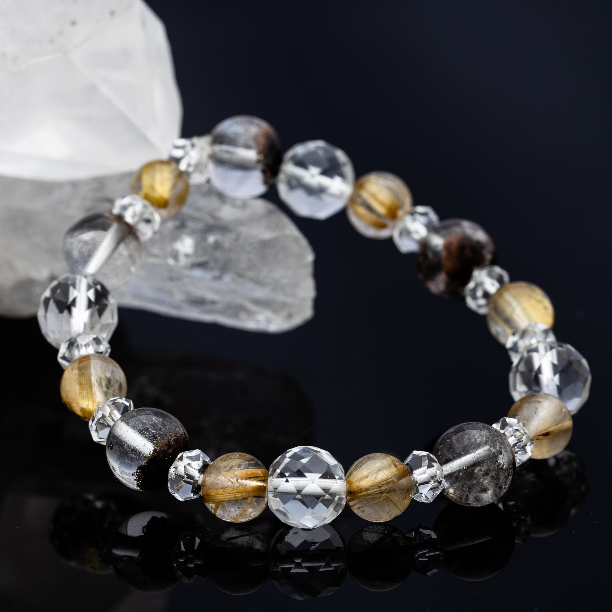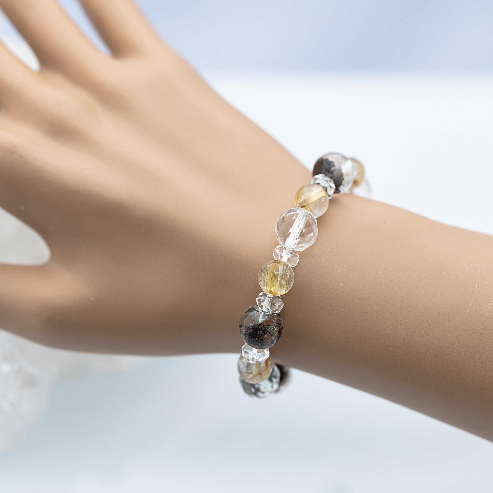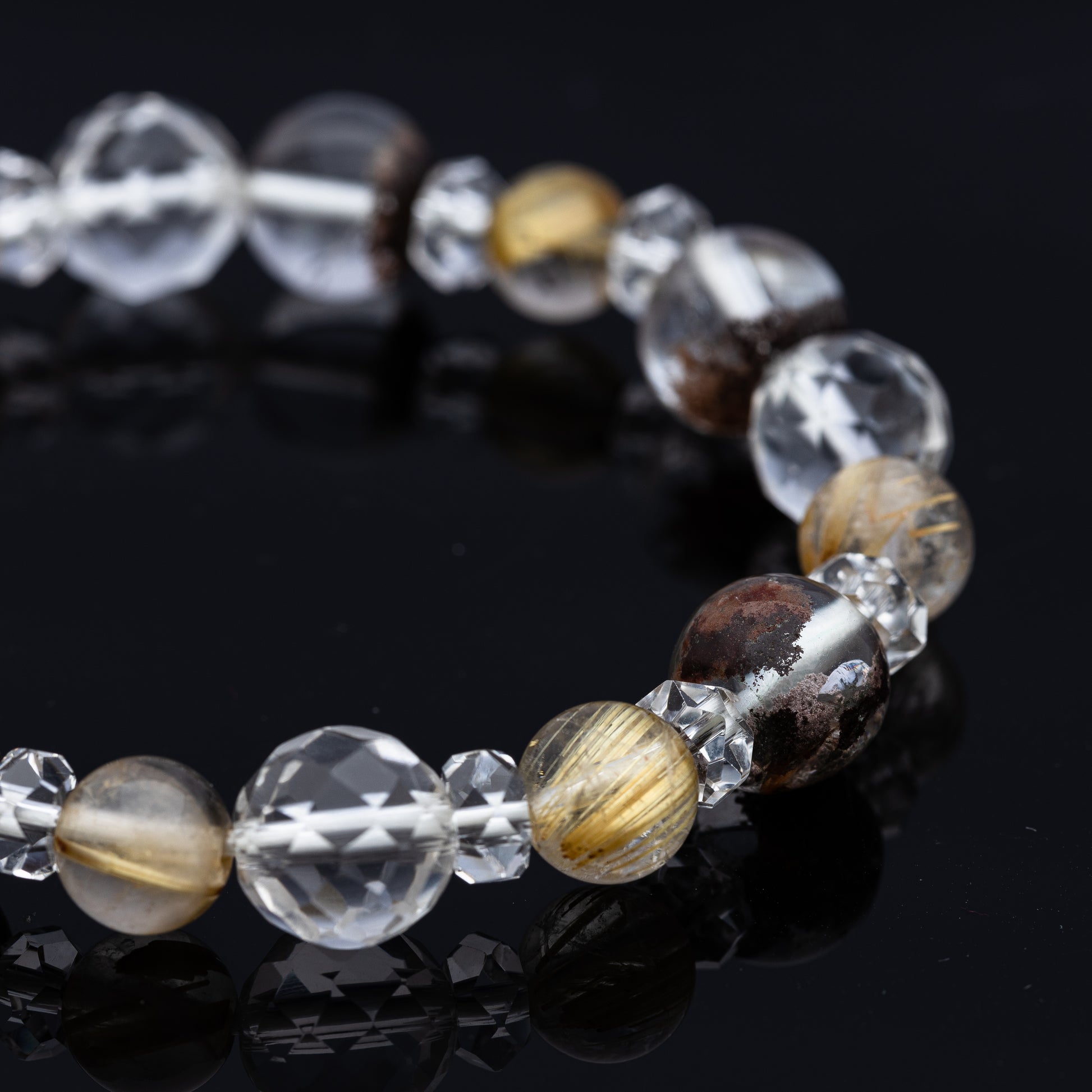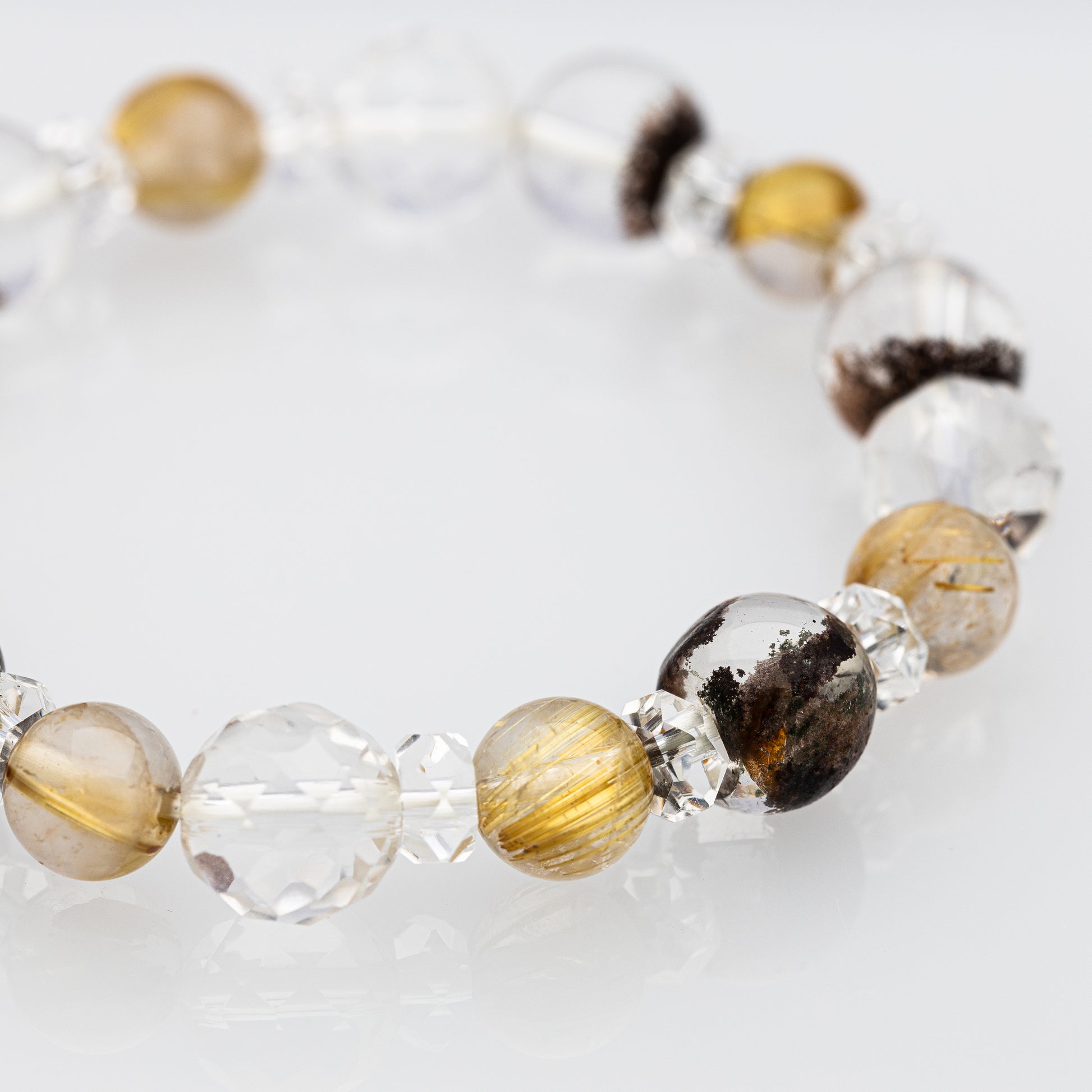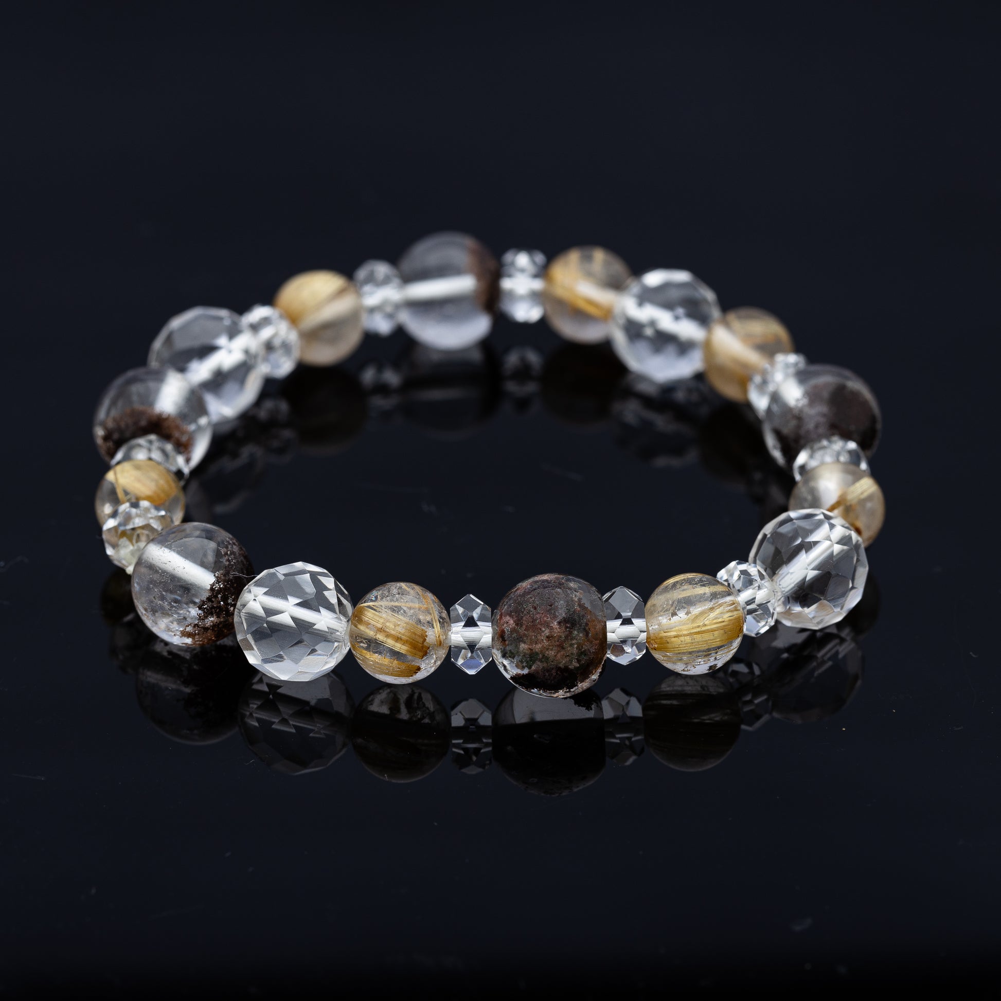 仕事活躍 ガーデンクオーツ&ルチルクオーツ&水晶(カット)MIX パワーストーンブレスレット