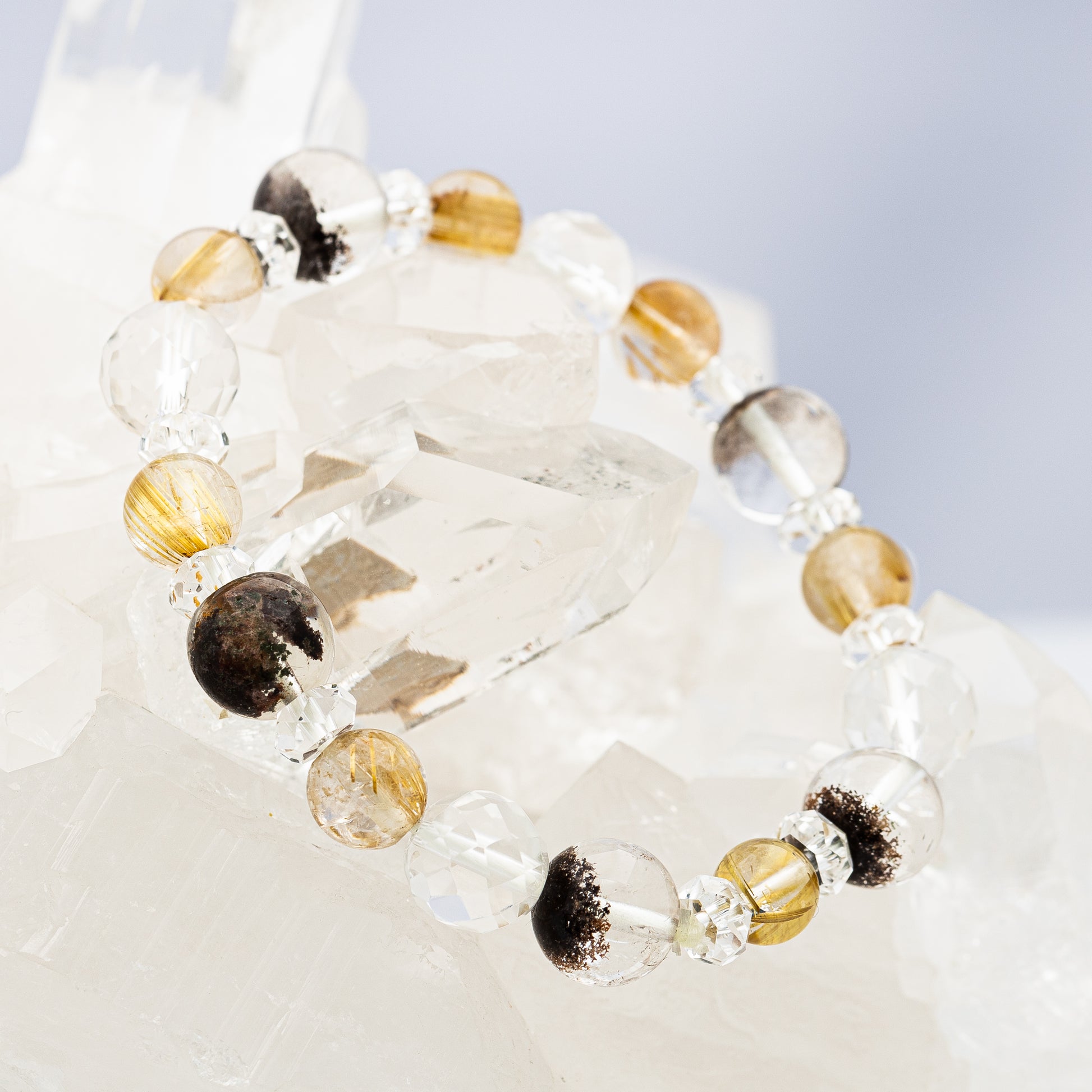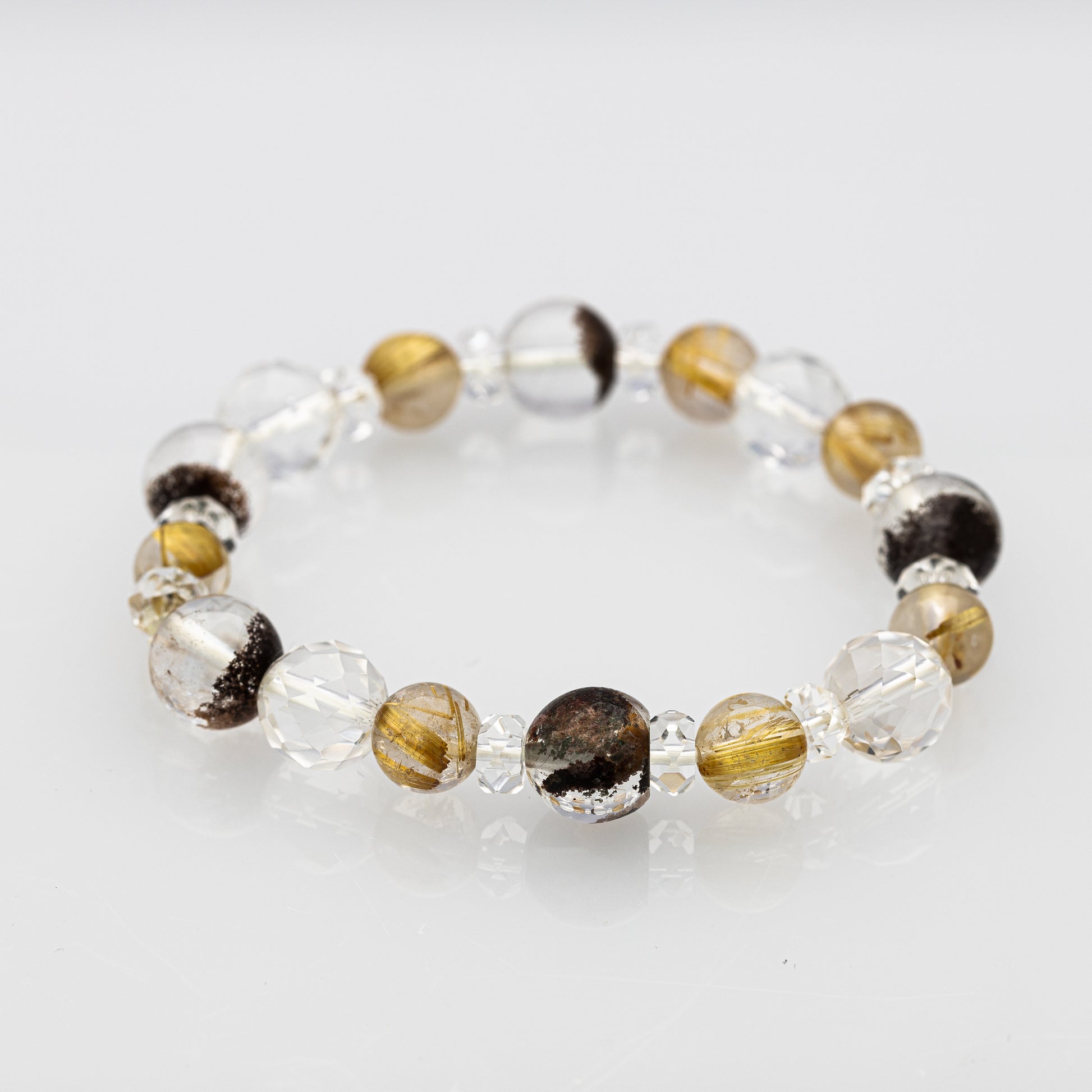 ガーデンクオーツとルチルクオーツ、水晶(カット)を組み合わせたパワーストーンブレスレットです。
