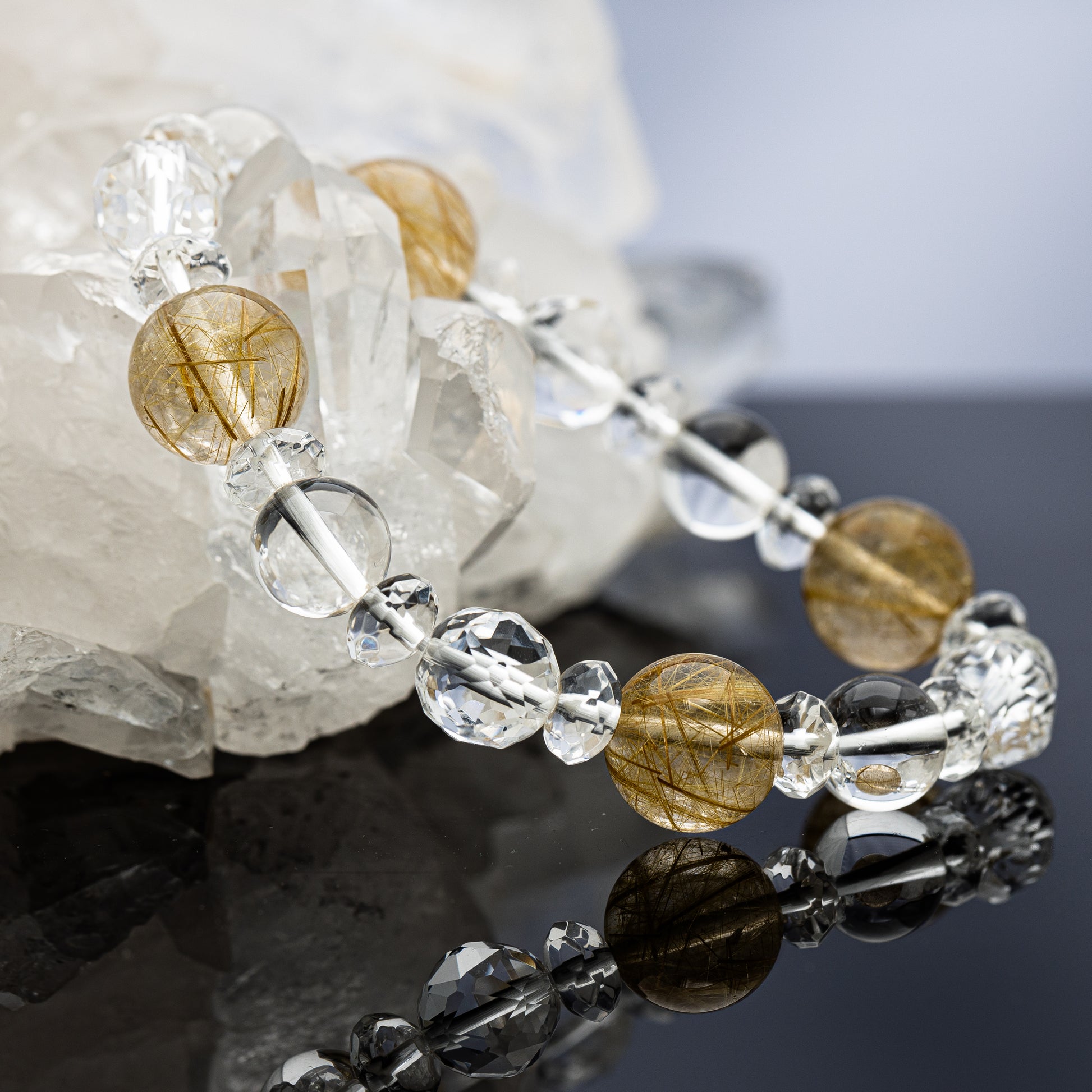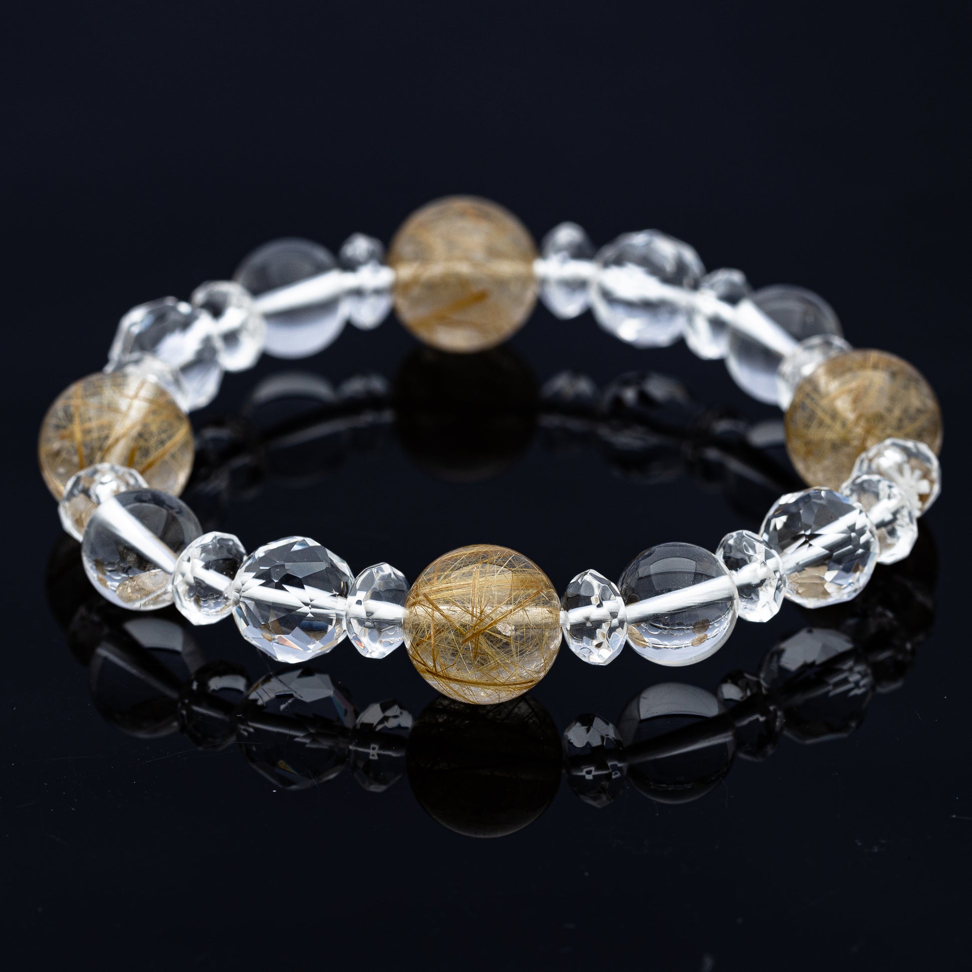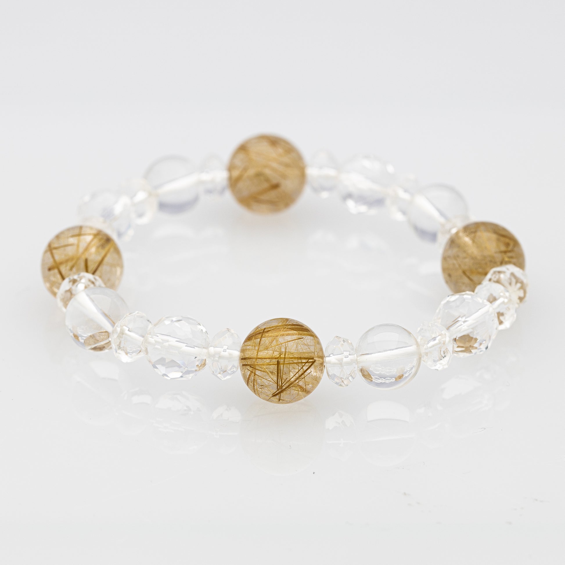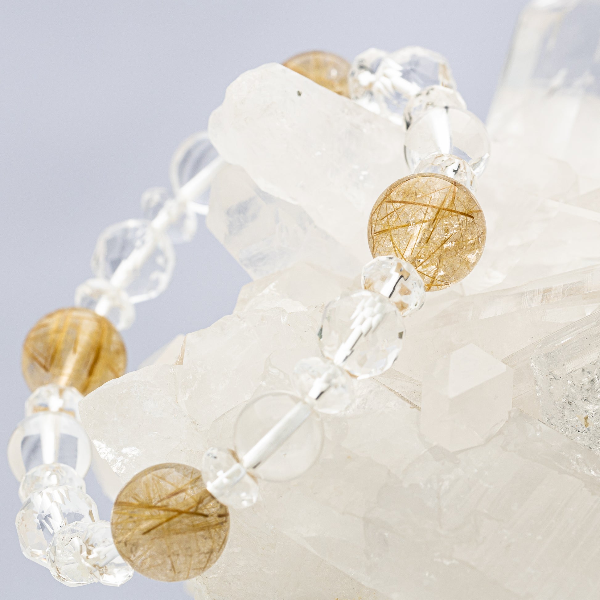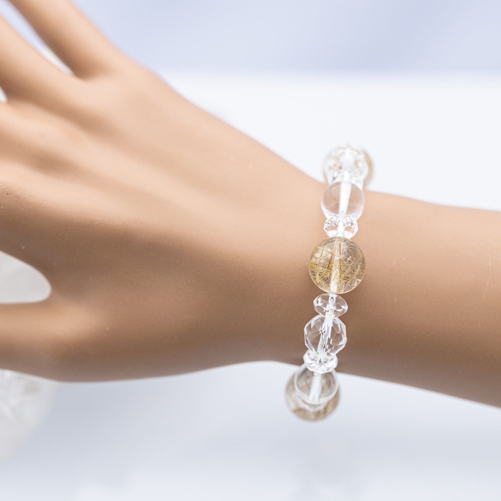ルチルクオーツと水晶を組み合わせた、パワーストーンブレスレットです。